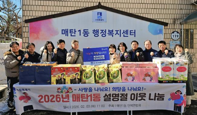 | ▲ 수원시 영통구 매탄1동 2026년 설명절 이웃돕기 나눔 전달식 개최 |