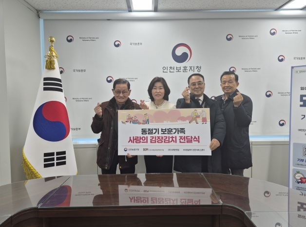 [메이저뉴스] 인천보훈지청은 12월 9일 겨레홀에서 사회문화 정책연구원 등 관내 3개 후원기관과 함께 동절기 보훈가족 사랑의 김장김치(1015kg, 145가구) 전달식을 개최했다.
