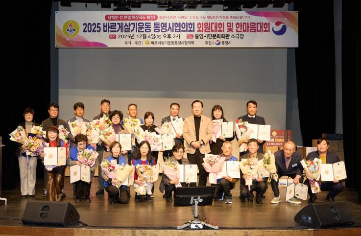 [메이저뉴스]바르게살기운동 통영시협의회는 지난 4일 통영시 시민문화회관 소극장에서 2025년 통영시 회원대회 및 한마음대회를 성황리에 마쳤다.
