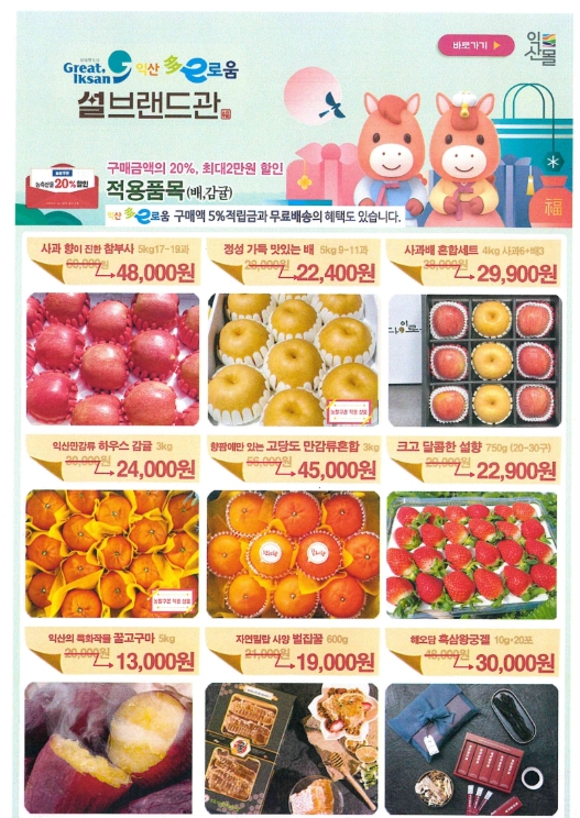 익산시는 오는 12일까지 익산몰 누리집에서 '설 맞이 기획전'을 운영한다고 2일 밝혔다.