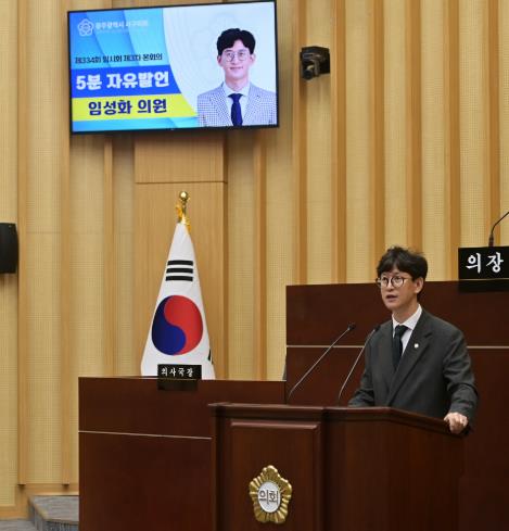 [메이저뉴스]광주 서구의회 임성화 의원이 24일 제334회 임시회 제3차 본회의에서 ‘5분 자유발언’을 통해 '4계절 쾌적한 착한 보행환경 조성을 위한 종합적인 방안'을 제안하며 적극적인 개선을 촉구했다.