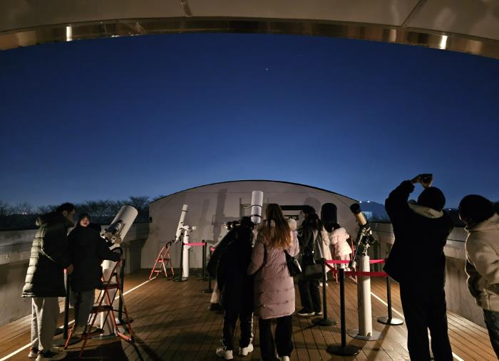 겨울방학 기간 ‘시티 오브 스타’는 기존 금·토요일 주 2회 운영에서 주 5회로 확대돼, 화요일부터 토요일까지 매일 열린다. 이에 따라 관람객은 천체투영관에서 가상의 밤하늘을 감상한 뒤, 천체관측실로 이동해 망원경으로 실제 별, 달, 행성을 관측할 수 있다.