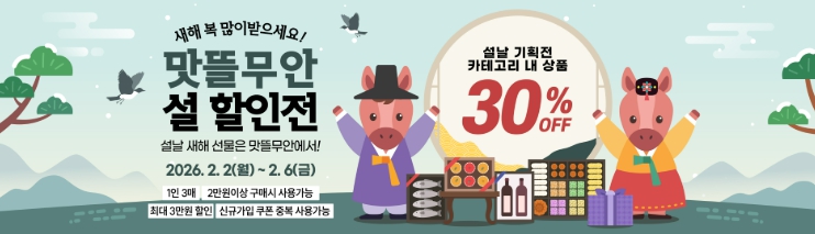 이번 설 기획전은 오는 2월 2일부터 6일까지 진행되며, ‘2026 설 선물관’ 카테고리 내 전 품목을 대상으로 2만 원 이상 구매 시 30% 할인 혜택이 제공된다.