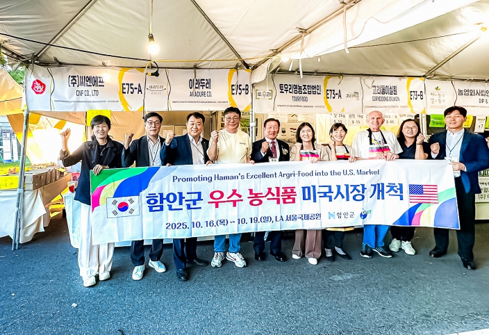 [메이저뉴스]함안군은 지난 16일부터 19일까지 4일간 미국 로스앤젤레스 한인타운 내 서울국제공원에서 열린 제52회 로스앤젤레스 한인축제 농수산박람회에 참가해 지역 우수 농식품을 선보였다고 밝혔다.