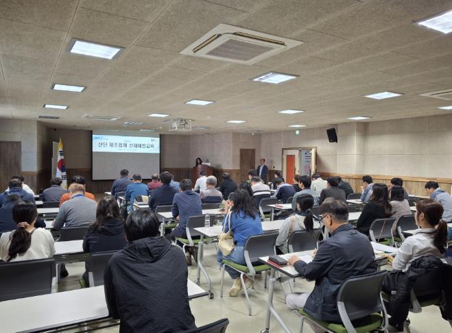 이번 교육은 산업안전보건공단 전남지역본부 안전보건부장 송홍기 전문강사를 초청해 진행했으며, 각 산업단지 입주업체의 사업주 50여 명이 참석해 산업재해 예방과 근로자 보호의 중요성에 대한 이해를 높였다.