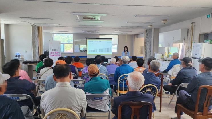 | ▲ 센터 직원이 어르신들을 대상으로 우울증 및 자살예방교육을 하고 있다. |