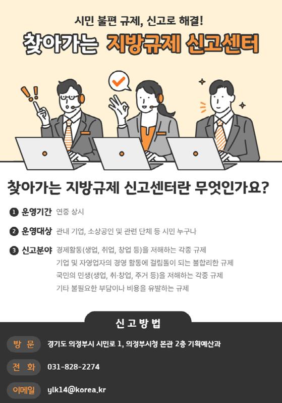 [메이저뉴스]의정부시는 시민의 일상과 기업 활동을 저해하는 불합리한 규제를 현장에서 직접 듣고 해결하기 위해 ‘찾아가는 지방규제 신고센터’를 연중 상시 운영한다고 12일 밝혔다.