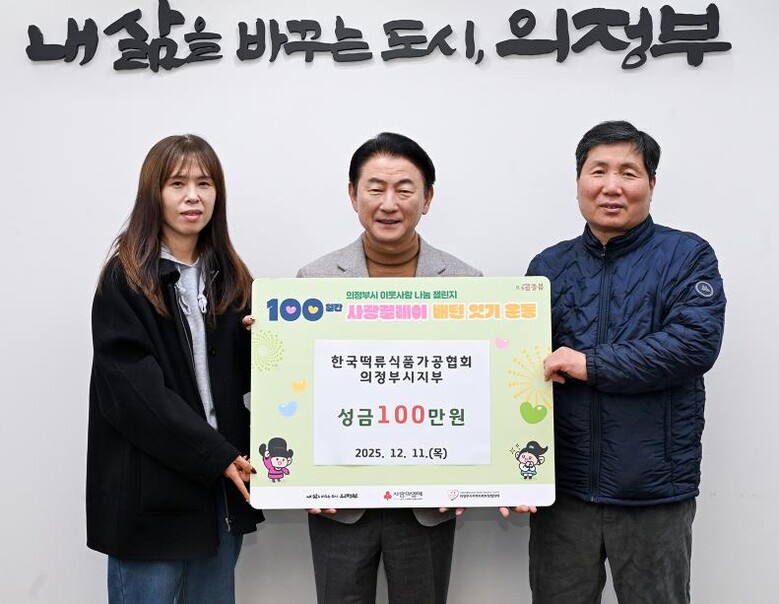 김동근 시장은 “힘든 여건 속에서도 나눔을 실천해 주신 한국떡류식품가공협회 의정부시지부 지부장님과 회원들께 감사드린다”며 “의정부시는 이러한 따뜻한 마음이 지역사회 전반으로 확산되도록 적극 지원하겠다”고 말했다.