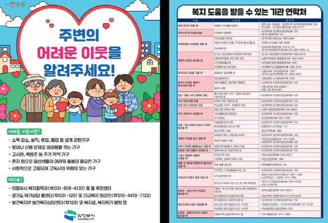 또한 시는 관리사무소와 경로당 등 생활밀접기관에 복지 사각지대 발굴 안내문을 발송하고, 각 동에서는 위기가구 발굴 캠페인 등 자체 특화사업을 추진한다. 아울러 동지역사회보장협의체와 해피브릿지(명예사회복지공무원)를 중심으로 지역안전망을 활용해 복지 사각지대 해소에 앞장선다.