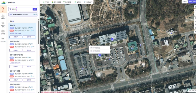 또한, 항공시계열 메뉴에서는 2008년 이후의 항공사진을 지도 위에 구현, 연도별로 도시의 변화를 비교할 수 있어 밀양의 발전 과정과 변화된 도시 모습을 직관적으로 확인할 수 있다.