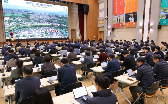 [메이저뉴스]경주시는 24일 오전 주낙영 시장 주재로 확대간부회의를 열고 연말 주요 현안과 행사 추진 상황을 점검했다고 밝혔다.