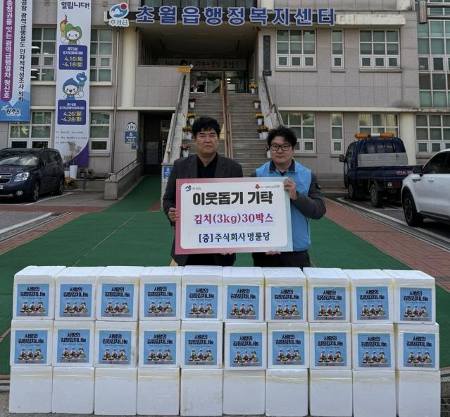 [메이저뉴스]광주시 초월읍에 소스 제조 공장을 두고 있는 주식회사 명륜당은 지난 21일 김장 김치 30박스를 경기 사회복지공동모금회를 통해 광주시 초월읍에 기탁했다.