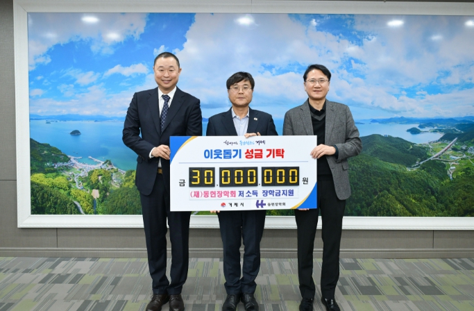 [메이저뉴스]거제시는 지난 26일, (재)동헌장학회가 관내 저소득 가정 학생들의 학업 지원을 위해 장학금 3,000만 원을 기탁했다고 밝혔다.