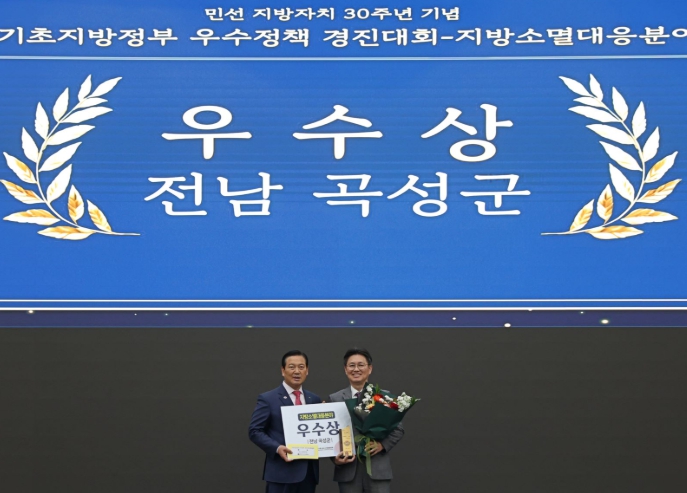 [메이저뉴스]전남 곡성군이 지난 26일 충남 보령시에서 열린 ‘2025년 기초지방정부 우수정책 경진대회’에서 지방소멸대응 분야 우수상을 받았다고 1일 밝혔다.