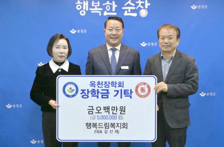 [메이저뉴스]순창군이 1일 (사)행복드림복지회에서 순창군옥천장학회에 장학금 500만원을 기탁했다고 밝혔다.