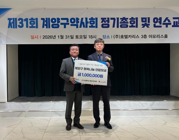 [메이저뉴스]인천광역시 계양구는 지난 1월 31일 열린 ‘제31회 계양구 약사회 정기총회’에서 지역 보건 향상과 사회공헌 활동에 기여한 유공자들에게 표창장을 수여했다.