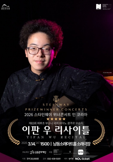 [메이저뉴스] 인천시 남동구 남동문화재단은 제65회 페루초 부소니 국제 피아노 콩쿠르 우승자인 이판 우(YIFAN WU)의 피아노 리사이틀 공연을 남동소래아트홀에서 3월 14일 15시에 개최한다고 19일 전했다.