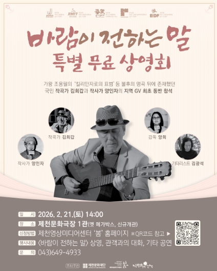 [메이저뉴스]제천문화재단이 오는 2월 21일 오후 2시, 제천문화극장 (의병대로18길 1)에서 양희 감독과 출연진이 함께 하는 '바람이 전하는 말' 특별 무료 상영회를 개최한다.