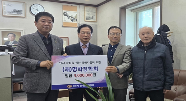 [메이저뉴스]연말이 되면서 우리 주변에 어려운 이웃을 위한 성금 모금이 한창인 가운데 공주시 전기공사협의회(회장 윤경수)는 지역의 인재 양성을 위한 장학사업비 300만원을 (재)명학장학회에 전달했다.