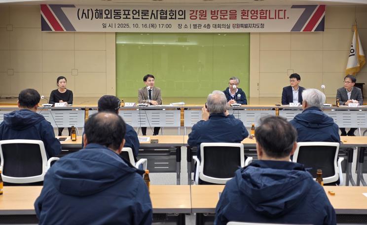 [메이저뉴스] 강원특별자치도는 10월 16일 도청을 방문한 (사)해외동포언론사협회(회장 김훈)와 간담을 갖고, 강원특별자치도의 비전과 주요 정책을 소개하는 한편 재외동포 사회와의 소통을 강화하는 시간을 가졌다.