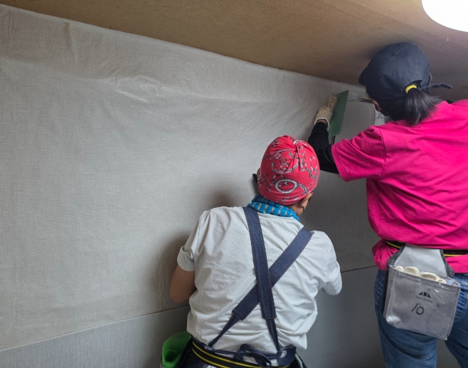 참여자들은 실습을 통해 익힌 도배 기술을 활용해 노후된 벽지를 새로 교체하며 이웃에게 쾌적하고 따뜻한 생활공간을 선물했다.