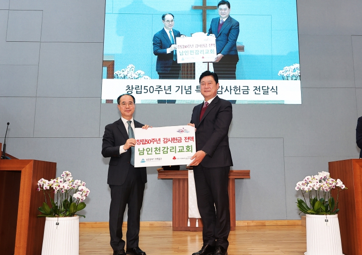 이날 전달식은 이영훈 구청장을 비롯해 성도 500여 명이 참석한 가운데 진행됐으며, 교회는 창립 50주년 감사 예배 중 당일 감사헌금 전액을 지역사회 기부금으로 전달했다.