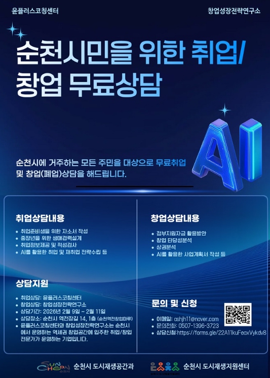 시 관계자는 “순천역전 창업마루는 지역 내 창업과 상생 기반을 확산하기 위해 조성된 도시재생 거점시설”이라며, “이번 상담으로 시민들이 취업과 창업 준비 과정에서 방향을 설정하는 데 도움이 되길 바란다”고 말했다.