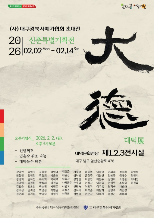 조재구 남구청장은 “2026년 새봄이 오는 입춘의 길목에서 우리나라 전통의 미를 느낄 수 있도록 준비한'대덕전(大德展)'을 통해 덕을 나누고 미래로 나아갈 에너지를 얻으시길 바란다.”라고 전했다.