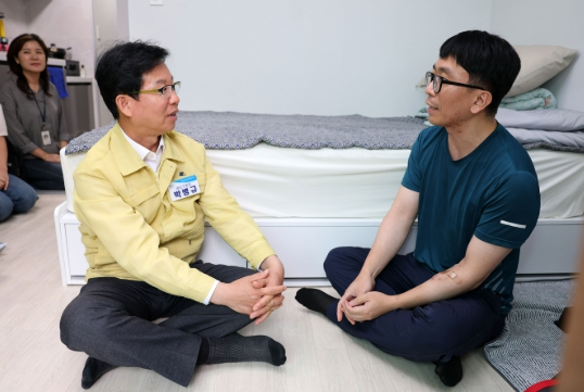 [메이저뉴스]박병규 광산구청장이 지난 29일 ‘살던집 프로젝트’의 회복 및 자립 준비 공간인 ‘중간집’에서 생활하며, 의료‧돌봄 서비스를 받고 있는 주민을 위문했다.