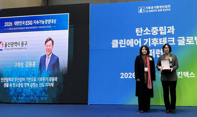 [메이저뉴스]울산 동구는 환경일보와 한국환경경영학회가 공동으로 주최하는 2026 대한민국 ESG 지속 가능 경영대상에서 전국 19개 대상 수상기관 중 하나로 선정되는 영예를 안았다.