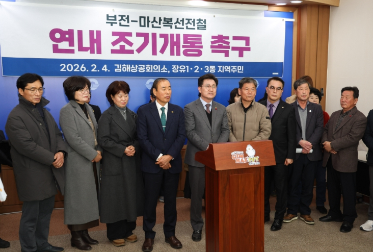 [메이저뉴스]김해시 상공계와 시민들은 4일 오전 11시 김해시청 브리핑룸에서 부전-마산복선전철의 연내 조기 개통을 강력 촉구했다.