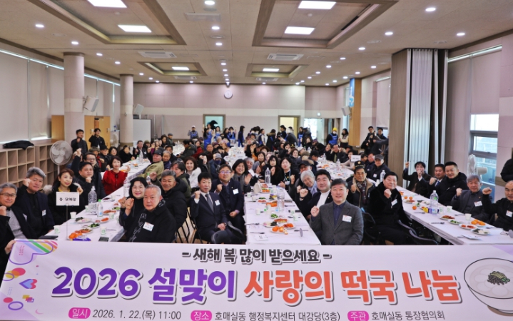 호매실동 통장들은 이른 아침부터 정성스럽게 준비한 떡국과 반찬을 지역 어르신 등 300여 명에게 대접하며, 서로의 건강과 안부를 묻고 정을 나누는 소중한 시간을 가졌다.
