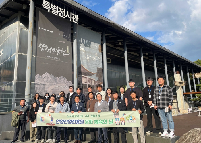[메이저뉴스]안양산업진흥원은 23일 임직원과 함께 안양박물관 특별기획전 ‘삼성기유첩: 그림으로 걷는 안양’을 관람하는 ‘직원 문화산책 DAY’를 진행했다고 밝혔다. 이번 행사는 안양문화예술재단이 주관하는 전시를 통해 지역의 역사와 문화예술을 함께 체험하며 직원 간 소통을 강화하고 조직의 활력을 높이기 위해 마련됐다.