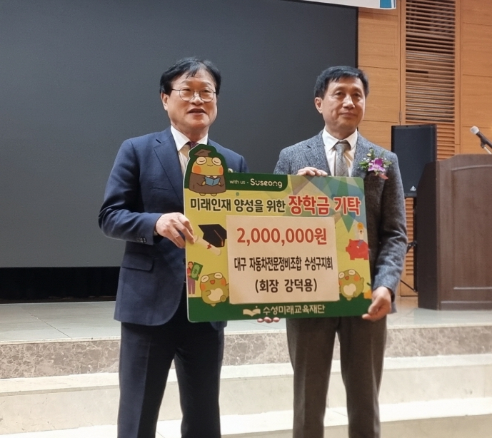 [메이저뉴스]대구자동차전문정비사업조합 수성구지회(회장 강덕용)는 지난 22일 호텔 라온제나에서 2026년 신년회를 개최하고, 지역 교육 발전을 위해 장학금 200만 원을 수성미래교육재단에 기탁했다.
