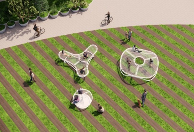 휴게공간은 대형, 중형, 소형 3가지 모델로 각각 연잎과 연꽃, 꽃봉오리를 형상화했다. 대형·중형 모델은 이용자들이 편히 누워서 하늘을 바라보고 휴식할 수 있도록 ‘유유자적’함을 모티브로 디자인했다. 소형모델은 좀 더 특별하다. 어릴 적 놀이터에 있던 회전무대(속칭 ‘뺑뺑이’)에 착안, 활동적인 재미를 더했다. 이용자들이 보다 즐겁고 능동적인 휴식을 경험할 수 있을 것으로 기대된다.