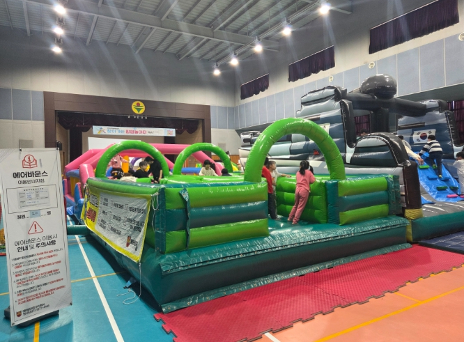 이후 자유로운 신체놀이가 가능한‘반원형챌린지바운스’,‘에어바운스 미끄럼틀’, ‘에어바운스 미로’등 5종의 에어바운스 시설이 설치되어 아이들이 마음껏 뛰놀 수 있는 시간을 제공했다.