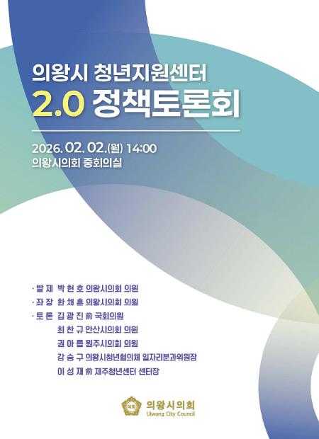 [메이저뉴스]의왕시의회는 한채훈 의원이 오는 2월 2일 오후 2시, 의왕시의회 중회의실에서 '의왕시 청년지원센터 2.0 정책토론회'를 개최한다고 밝혔다.
