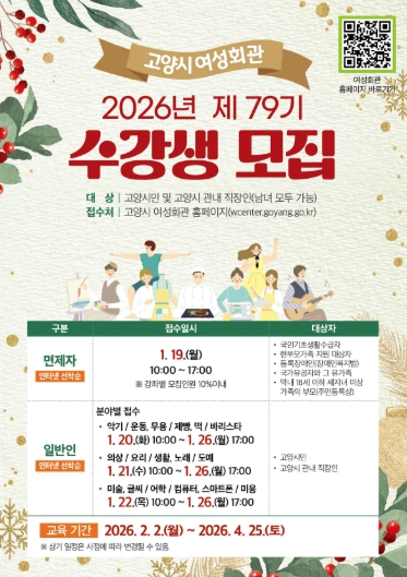 [메이저뉴스]고양특례시 여성회관은 오는 1월 19일부터 26일까지 2026년도 제79기 정규강좌 수강생을 모집한다고 밝혔다.