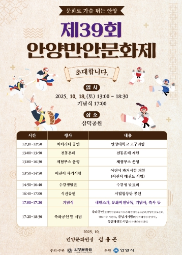 최대호 안양시장은 “한국 전통문화를 담은 콘텐츠가 세계적으로 큰 인기를 끌고 있는 만큼, 이번 행사가 우리 전통문화의 가치를 되새기는 뜻깊은 시간이 되길 바란다”고 말했다.