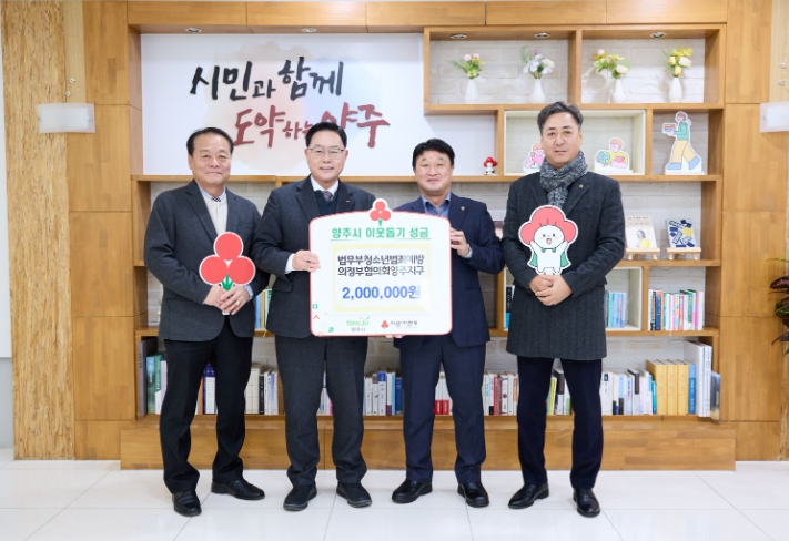 [메이저뉴스]양주시는 지난 30일 시장실에서 법무부청소년범죄예방 의정부협의회 양주지구로부터 이웃돕기 성금 200만 원을 기탁받았다고 밝혔다.