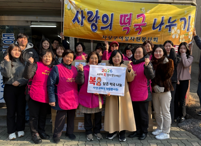 [메이저뉴스]부산 사상구는 지난 23일 사상구여성자원봉사회가 ‘2026년 복(福) 담은 떡국 나눔’ 행사를 통해 관내 저소득가정 100세대에 떡국떡을 후원했다고 밝혔다.