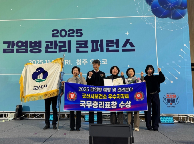[메이저뉴스]군산시가 질병관리청이 주최한 ‘2025년 감염병관리 콘퍼런스’ 에서 '2025년 지자체 감염병 예방·관리 업무 평가' 우수지자체로 선정되어 국무총리표창을 수상했다.