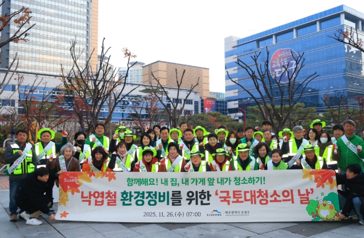 [메이저뉴스]대구 수성구는 26일 대구광역시 교육청 인근에서 겨울철 낙엽 정비를 위한 ‘국토대청소의 날’ 행사를 개최했다.