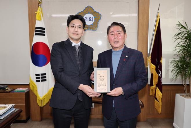 이번 감사패는 국가보훈부가 국가유공자 우선주차구역 설치에기여한 지방의회 의원 및 공무원 등을 대상으로 수여하는 포상으로 국가유공자에 대한 예우 문화 확산을 도모하기 위해 추진되고 있다.