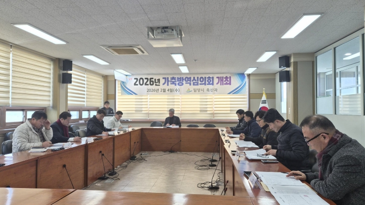 [메이저뉴스]경남 밀양시는 4일 농업기술센터 소회의실에서 ‘2026년도 가축방역심의회’를 개최하고, 가축 질병 없는 ‘청정 밀양’을 지키기 위한 방역 대책을 심의·의결했다.