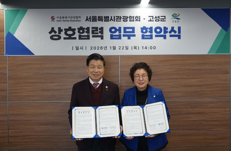 [메이저뉴스]경남 고성군은 1월 22일 서울특별시관광협회 회의실에서 서울특별시관광협회(회장 조태숙)와 지역 관광 활성화 및 관광산업 발전을 위한 업무협약(MOU)을 체결했다고 밝혔다.