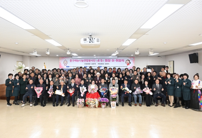 [메이저뉴스](사)울산중구자원봉사센터(이사장 신현석) 소속 중구재능나눔연합봉사단(회장 김영숙)이 지난 1월 29일(목) 오후 6시 중앙동 행정복지센터 3층 민방위교육장에서 제4·5대 회장 이·취임식을 개최했다.
