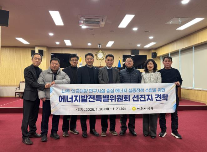 [메이저뉴스]나주시의회 에너지발전특별위원회는 인공태양 연구시설 유치 이후의 안정적인 운영 전략과 제도적 과제를 점검하기 위해 지난 1월 20일부터 21일까지 청주시 일원에서 선진지 견학을 실시했다.