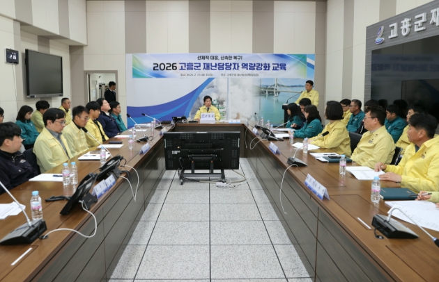 [메이저뉴스]고흥군은 23일 군청 재난종합상황실에서 읍·면 재난업무 팀장과 담당자 등 40여 명을 대상으로 ‘2026년 재난업무 담당자 역량강화 교육’을 실시했다고 밝혔다.