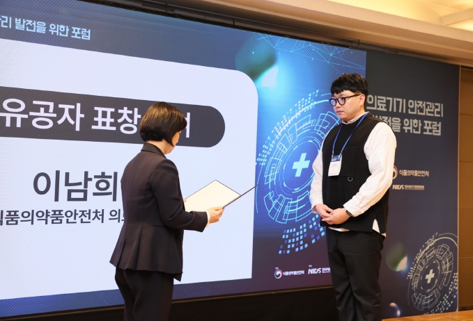 [메이저뉴스]케이메디허브(대구경북첨단의료산업진흥재단, 이사장 박구선) 연구원이 식품의약품안전처 주관 ‘의료기기 안전관리 발전 포럼’ 행사에서 ‘식품의약품안전처장 표창’을 수상했다.